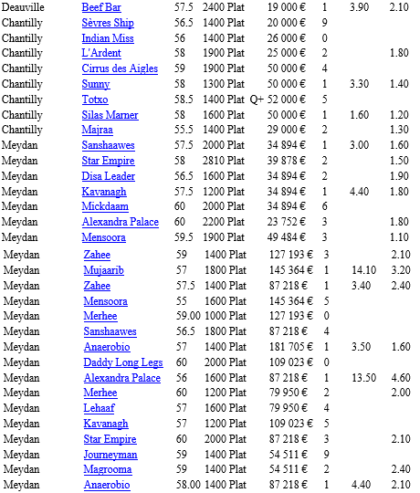Regardez maintenant un simple exemple de gains obtenus sur des dizaines de courses suivies par un jockey du moment.
